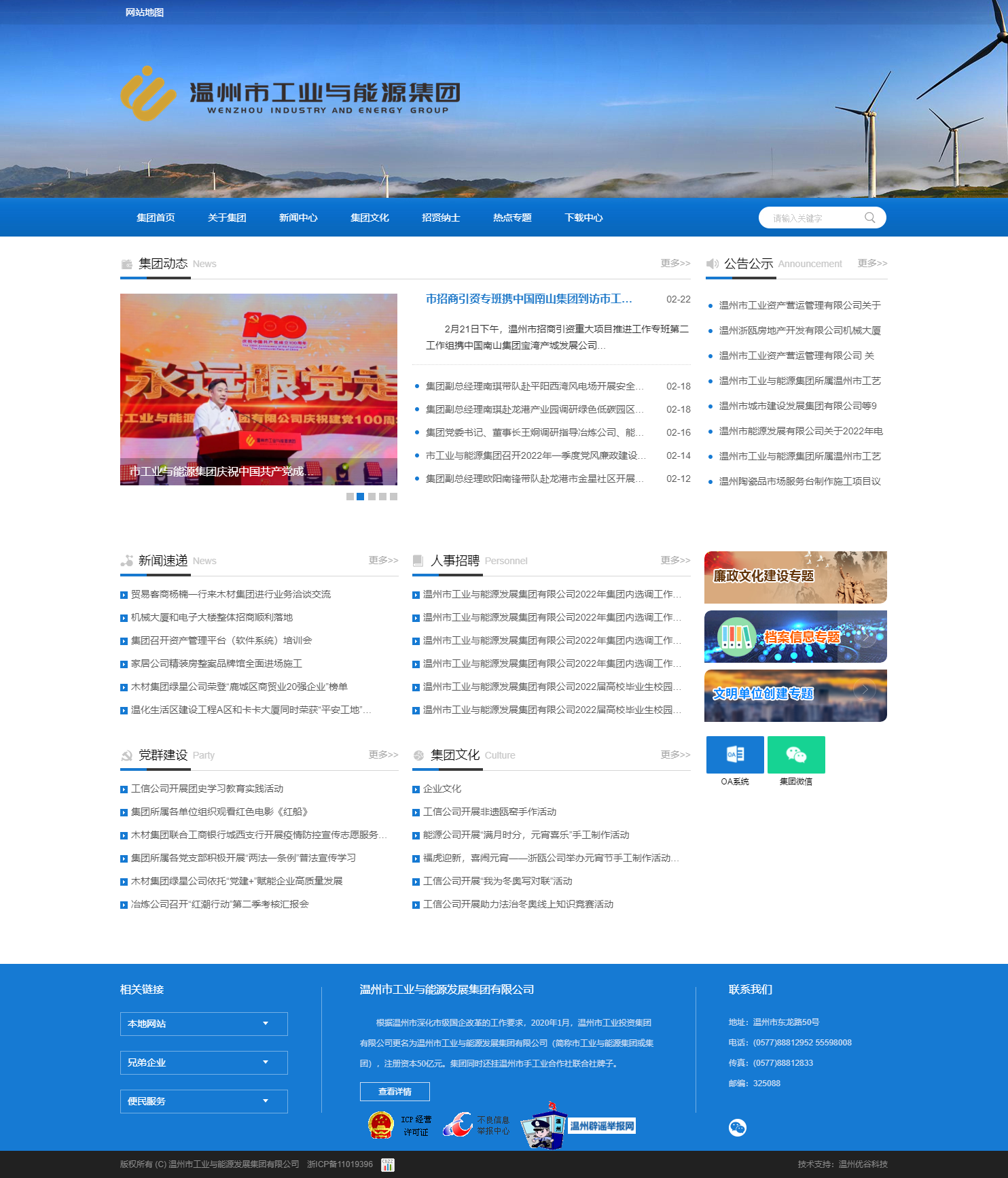 2020年1月,溫州市啟動國有企業(yè)深化改革,原溫州市工業(yè)投資集團(tuán)優(yōu)化組建為現(xiàn)在的溫州市工業(yè)與能源集團(tuán),為溫州市十大國有集團(tuán)之一,注冊資本50億元。集團(tuán)同時還掛溫州市手工業(yè)合作社聯(lián)合社牌子。
