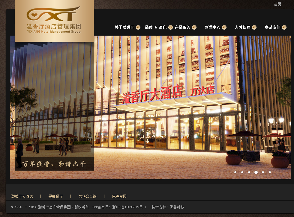 溢香廳酒店管理集團是從事高端餐飲的大型連鎖企業,由董事長柯五一先生創辦,始創于1988年,享譽溫州27年。現旗下擁有溢香廳大酒店、新溢香廳大酒店、溢香廳正茂大酒店、逸華會國際俱樂部、溢香廳萬達大酒店、晏虹餐廳萬達店、晏虹餐廳甌江店、巴巴莊園,逐步發展為多品牌、連鎖型的高端餐飲管理企業集團。